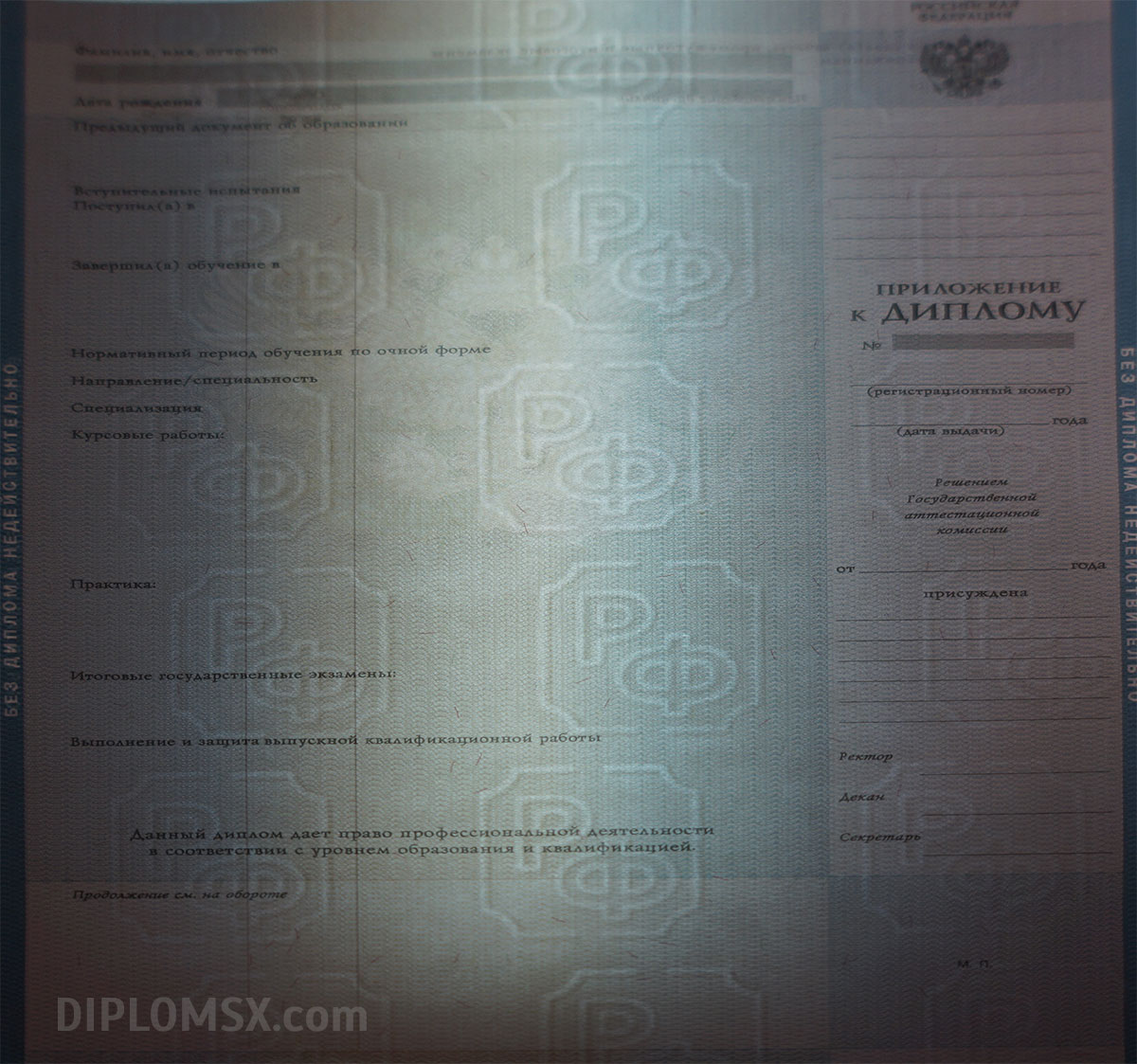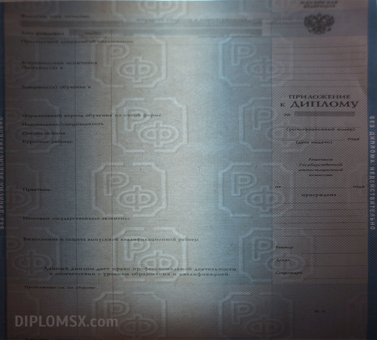 Современное оборудование, опыт и высокая квалификация персонала гарантируют подлинность и качество изготовленного диплома о высшем образовании!